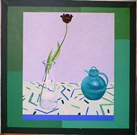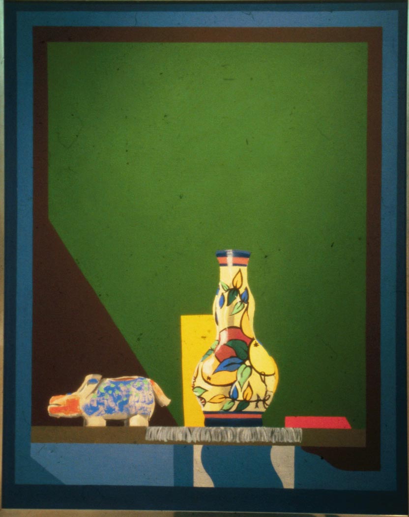 While this genre has not been a great part of my output I value the occasional opportunity to celebrate my own times with pictures of objects that are resonant of personal or family life. ‘Spot’ was the name my daughter gave to a pottery moneybox she made when she was still at primary school. ‘Marimekko Still-life’ came from my many visits to Finland when I was an advisor to the University of Industrial Arts in Helsinki.